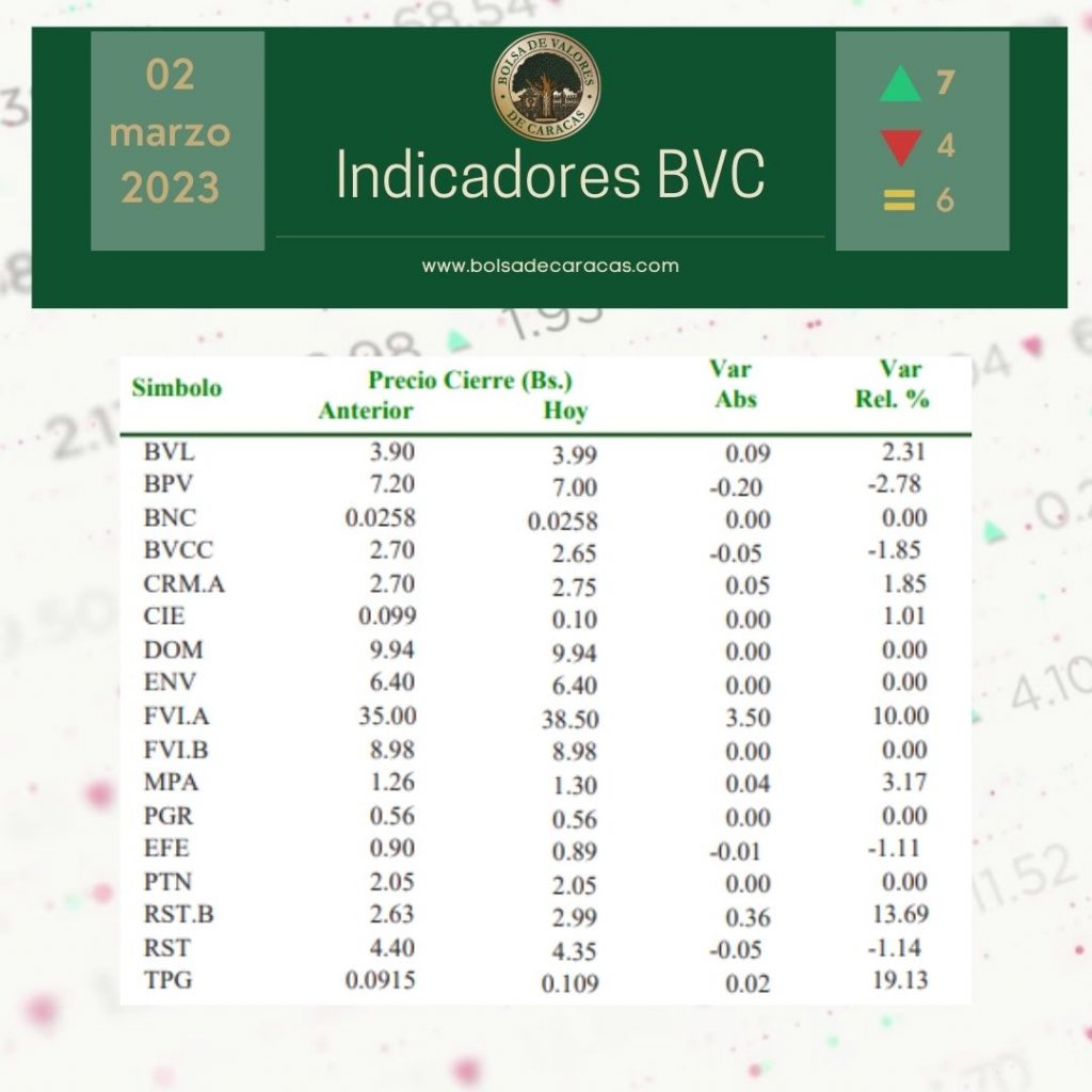 Se efectuaron 68 operaciones de compra/venta de acciones de las empresas inscritas en la pizarra de cotizaciones, en las cuales se transaron 153 mil 021 por 181 mil 015 bolívares.