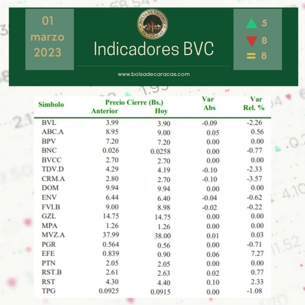 En el BVC Alternativo se transaron 8 acciones por 221 bolívares.