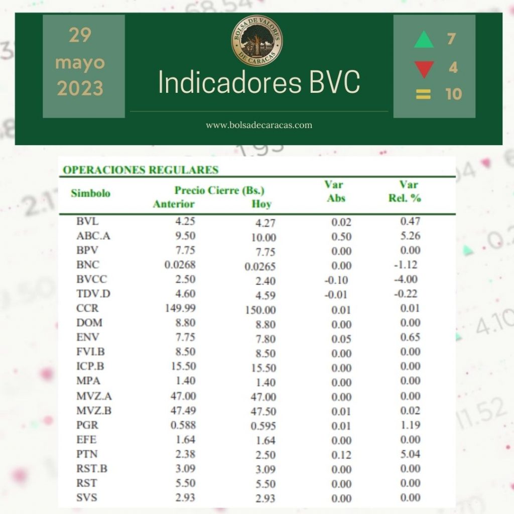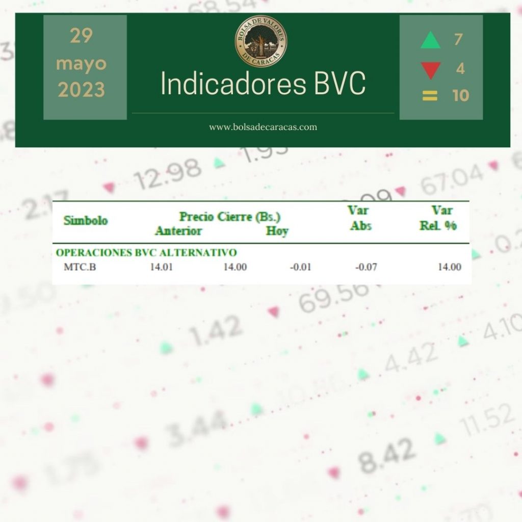 En el BVC Alternativo se transaron 7 mil 516 acciones por 105 mil 224 bolívares.