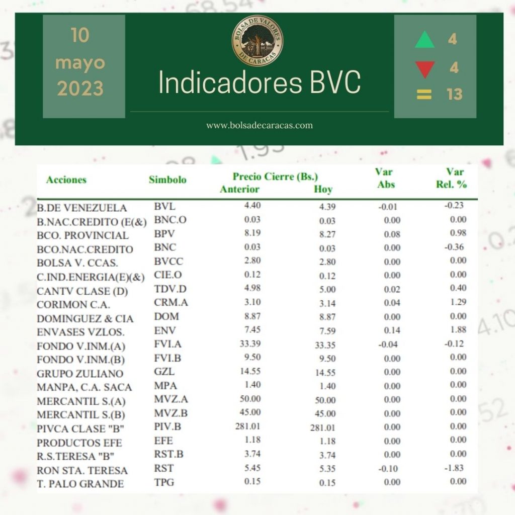 Se efectuaron 276 operaciones de compra/venta de acciones de las empresas inscritas en la pizarra de cotizaciones, en las cuales se transaron 1 mil 935 millones 140 mil 935 acciones por 52 mil 533 millones 723 bolívares.