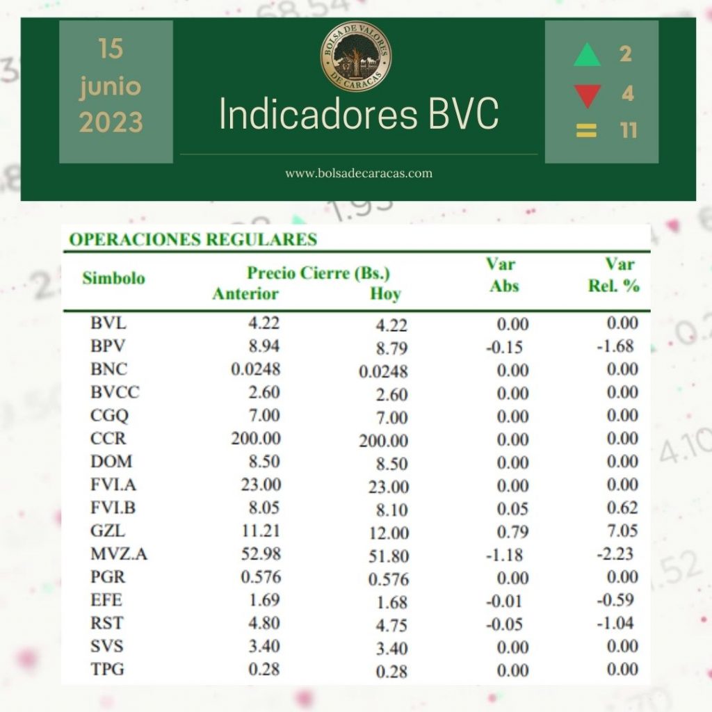 Se efectuaron 72 operaciones de compra/venta de acciones de las empresas inscritas en la pizarra de cotizaciones, en las cuales se transaron 1 millón 226 mil 402 acciones por 111 mil 968 bolívares.