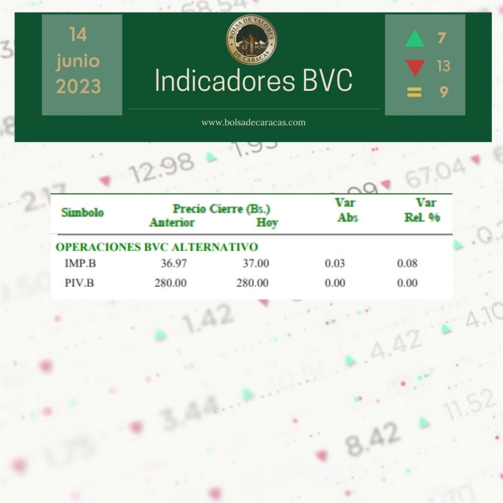 En el BVC Alternativo se transaron 14 acciones por 3 mil 434 bolívares.