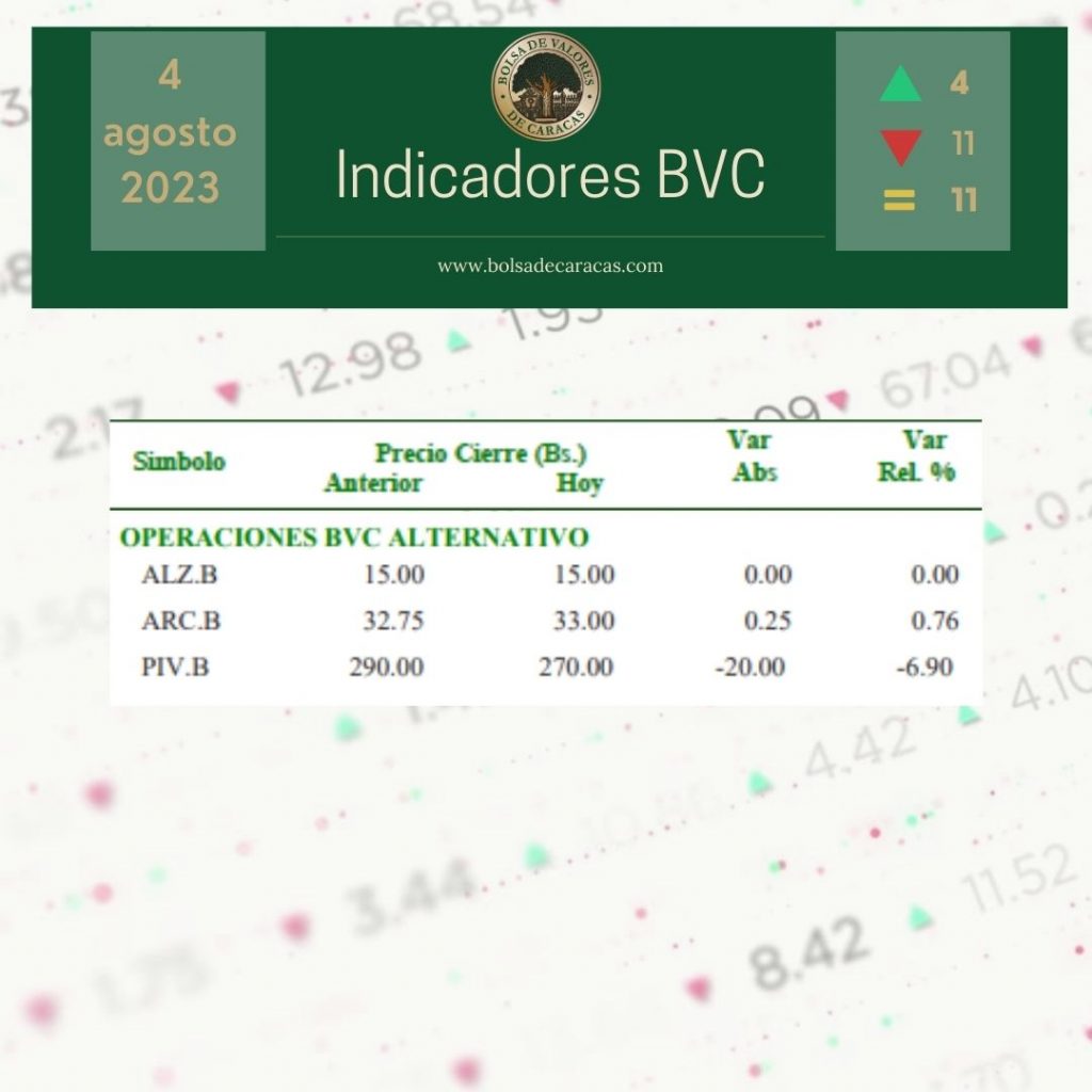 En el BVC Alternativo se transaron 76 acciones por mil 19 mil 008 bolívares.