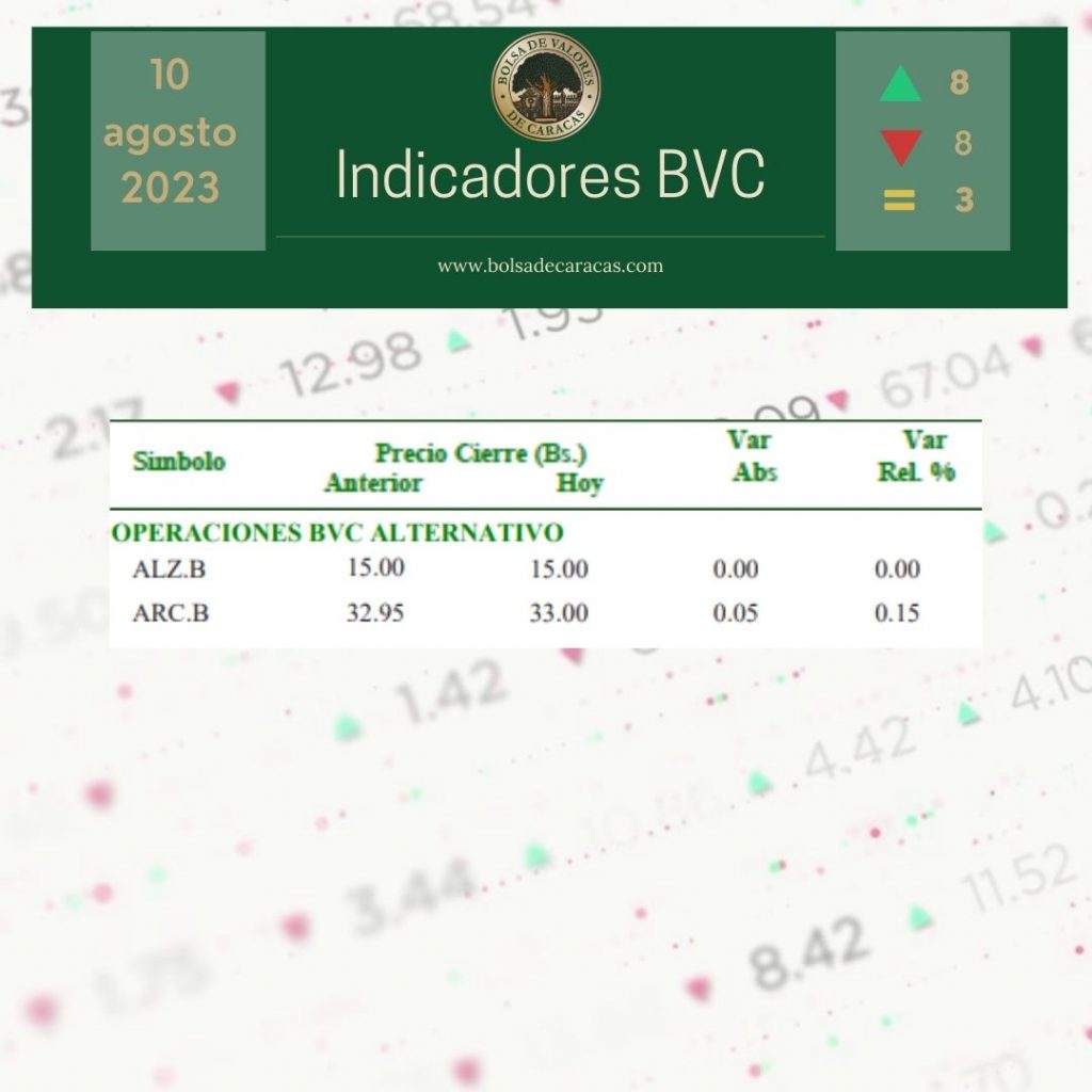 En el BVC Alternativo se transaron 11 acciones por mil 201 bolívares.