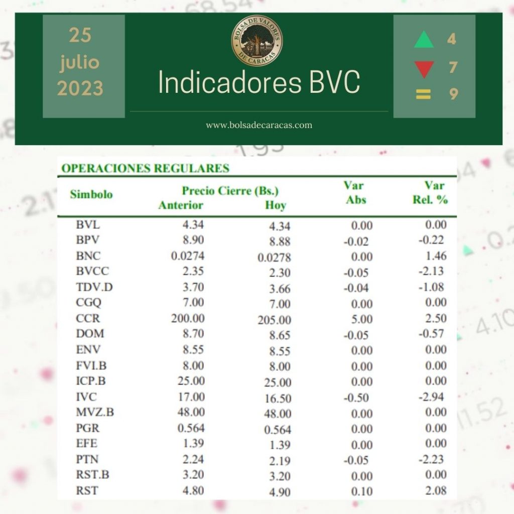 En el BVC Alternativo se transaron 272 acciones por 7 mil 349 bolívares.