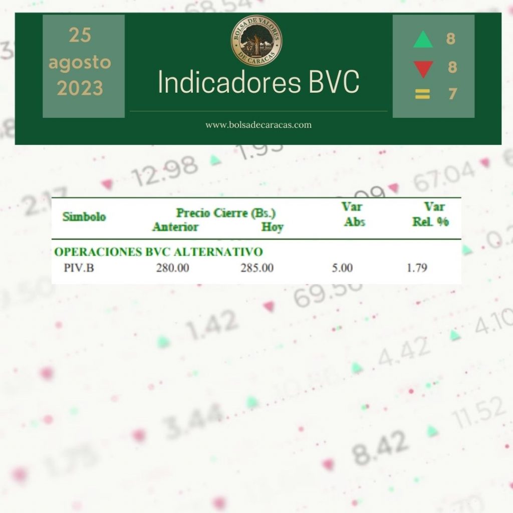 En el BVC Alternativo se transaron 26 acciones por 7 mil 410 bolívares.