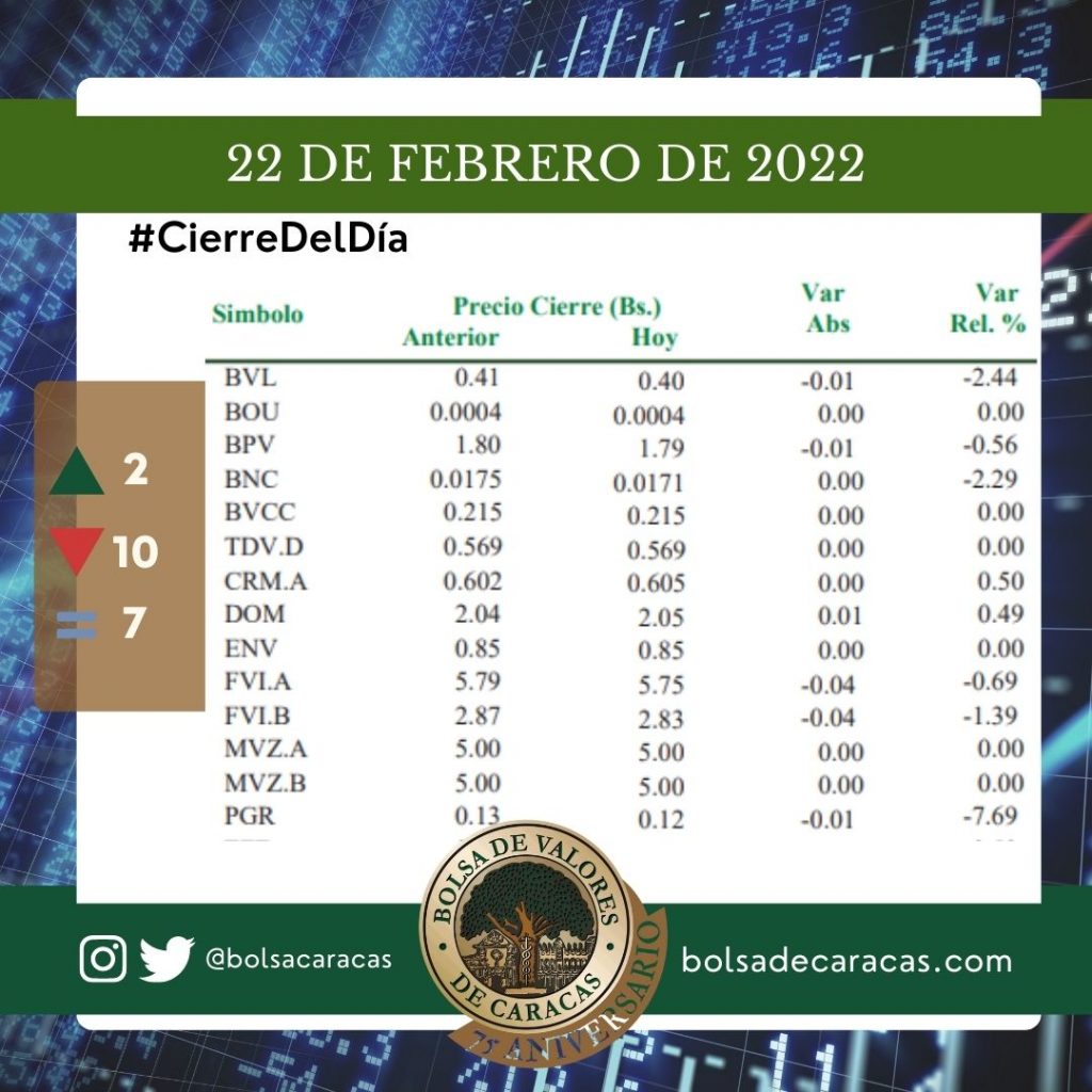 El índice principal de la Bolsa de Valores de Caracas, el IBC, culminó este martes en 5.349,20 puntos con una variación de 45,65 puntos (-0,29%) con respecto a la sesión anterior.