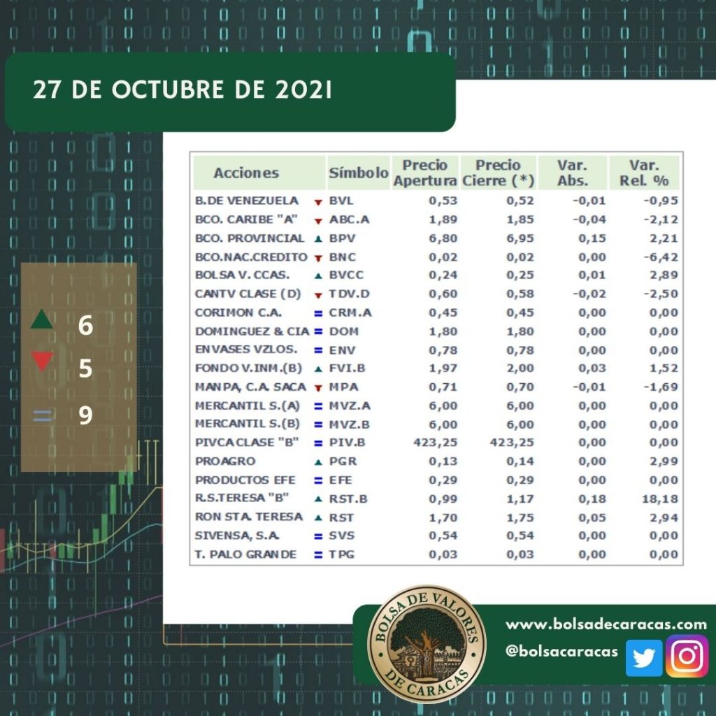 Se efectuaron 152 operaciones de compra/venta de acciones de las empresas inscritas en la pizarra de cotizaciones, en las cuales se transaron 654 mil 663 acciones por 60 mil 328 bolívares.
