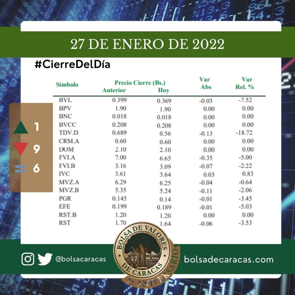 Se efectuaron 71 operaciones de compra/venta de acciones de las empresas inscritas en la pizarra de cotizaciones, en las cuales se transaron 64 millones 322 mil 223 acciones por 1 millón 171 mil 640 bolívares.