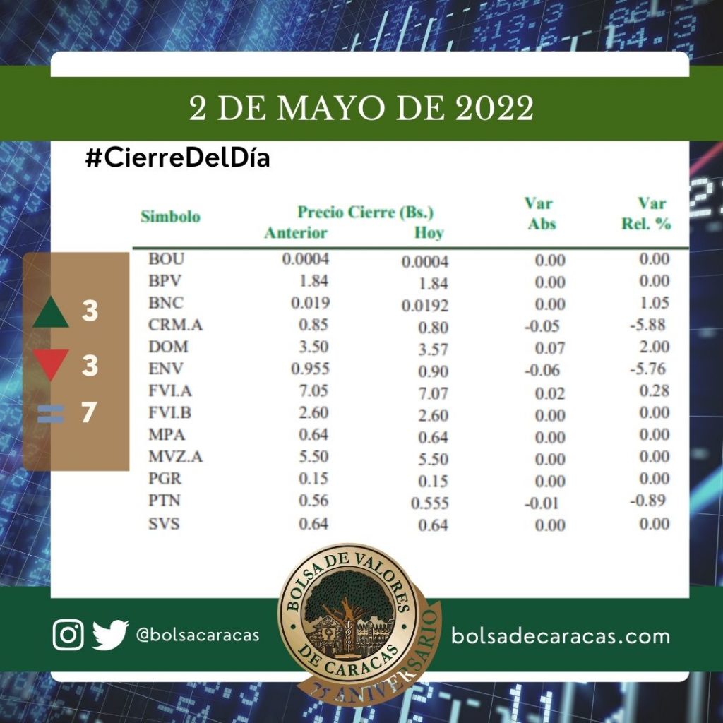 Se efectuaron 54 operaciones de compra/venta de acciones de las empresas inscritas en la pizarra de cotizaciones, en las cuales se transaron 351 mil 220 acciones por 29 mil 531 bolívares.
