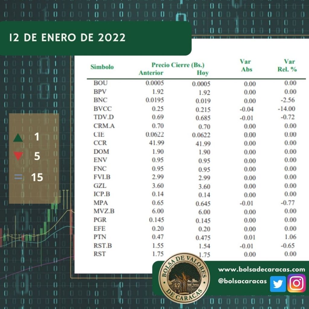 Se efectuaron 85 operaciones de compra/venta de acciones de las empresas inscritas en la pizarra de cotizaciones, en las cuales se transaron 127 mil 456 acciones por 57 mil 480 bolívares.
