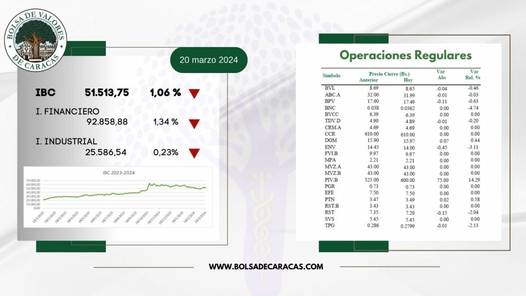 Índice Bursátil Caracas cerró en 51.513,75 puntos #20mar