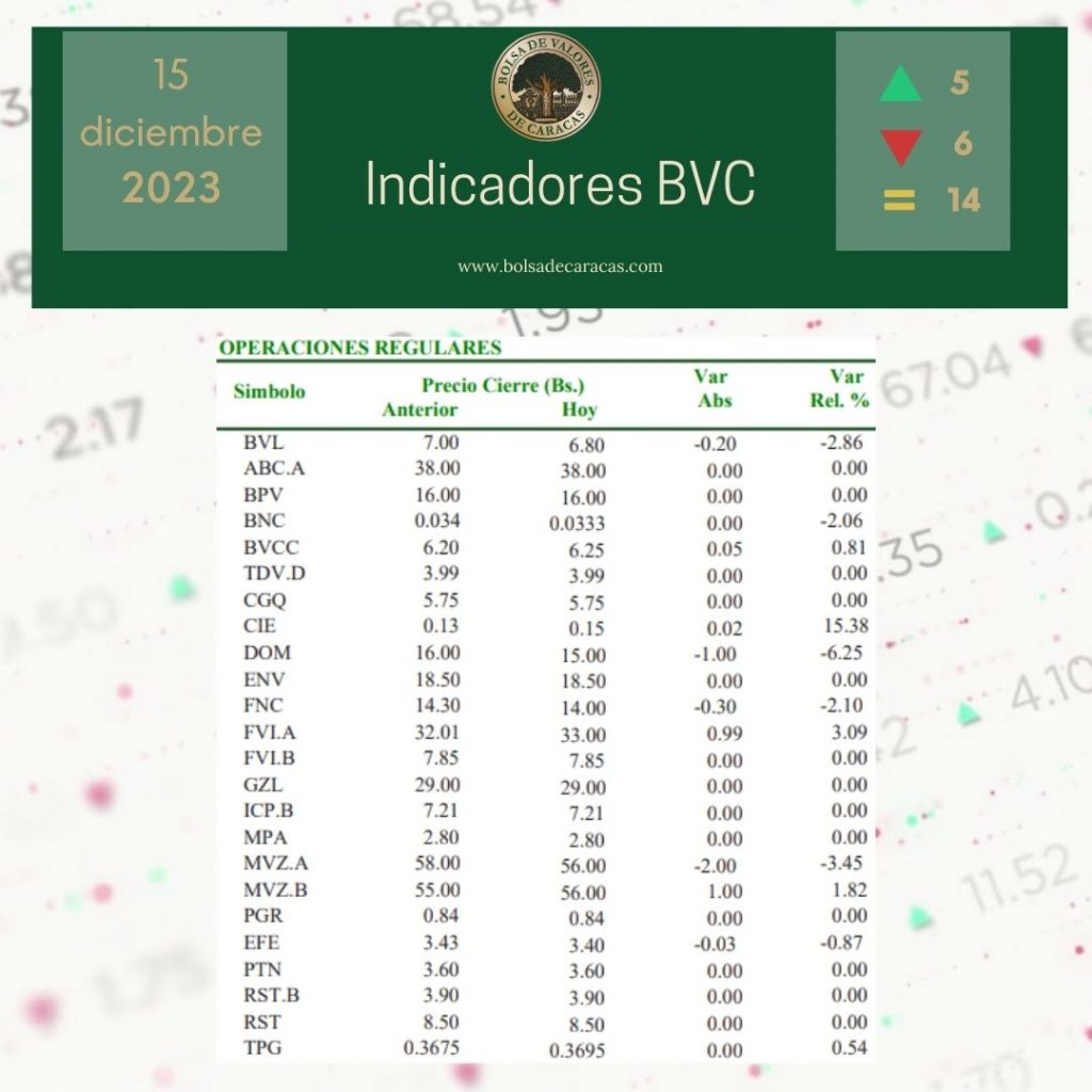 Índice Bursátil Caracas cerró en 54.642,53 puntos #15dic