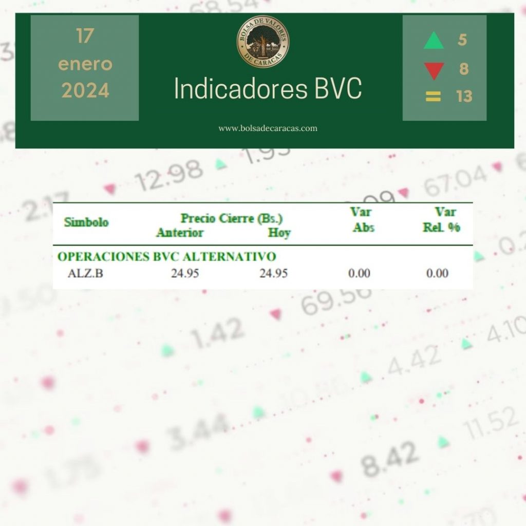 En el BVC Alternativo se transaron 200 acciones por 4 mil 990 bolívares.