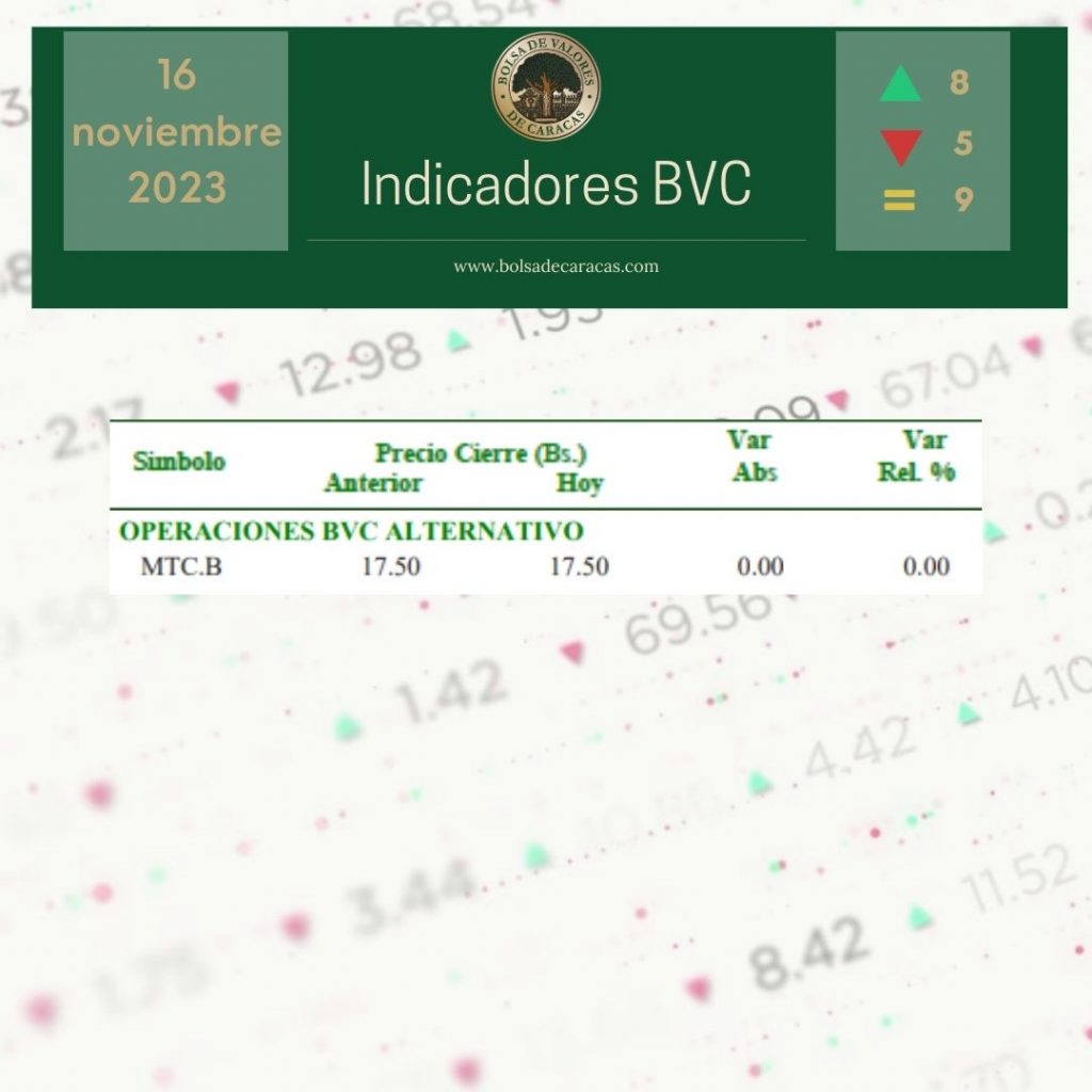 En el BVC Alternativo se transaron 40 acciones por 700 bolívares.