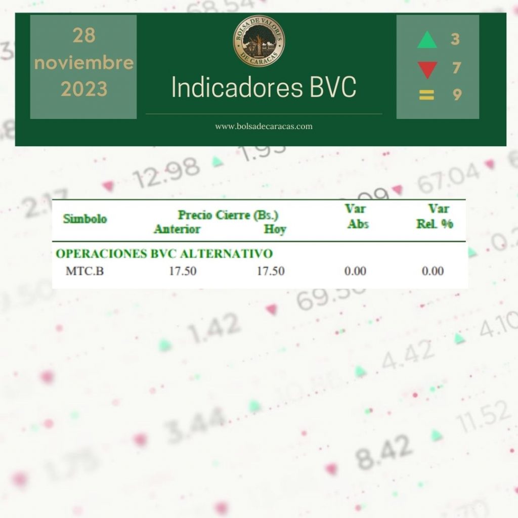 En el mercado a plazo se negociaron 1 millón 814 mil 507 acciones por un monto de 565 mil 012 bolívares.