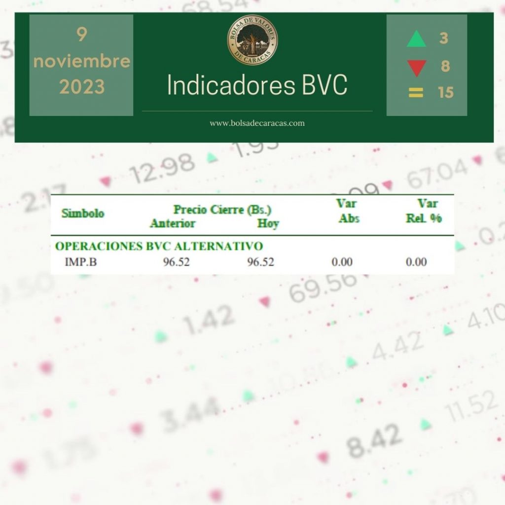 En el BVC Alternativo se transaron 3 acciones por 304 bolívares.
