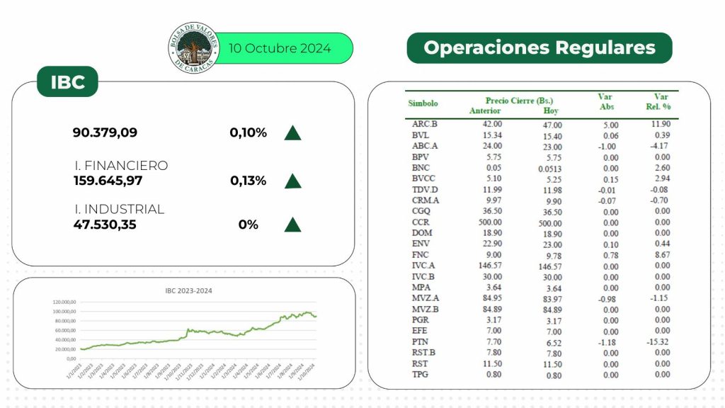 Índice Bursátil Caracas cerró en 90.379,09 puntos #10oct