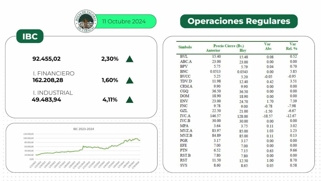 Índice Bursátil Caracas cerró en 92.455,02 puntos #11oct