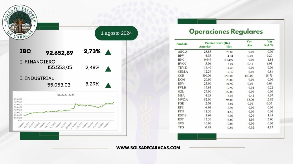 Índice Bursátil Caracas cerró en 92.652,89 puntos #1ago