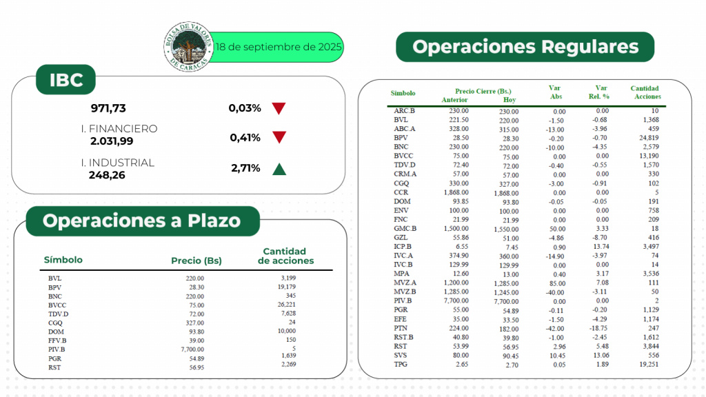 Índice Bursátil Caracas cerró en 971,73 puntos #18sep