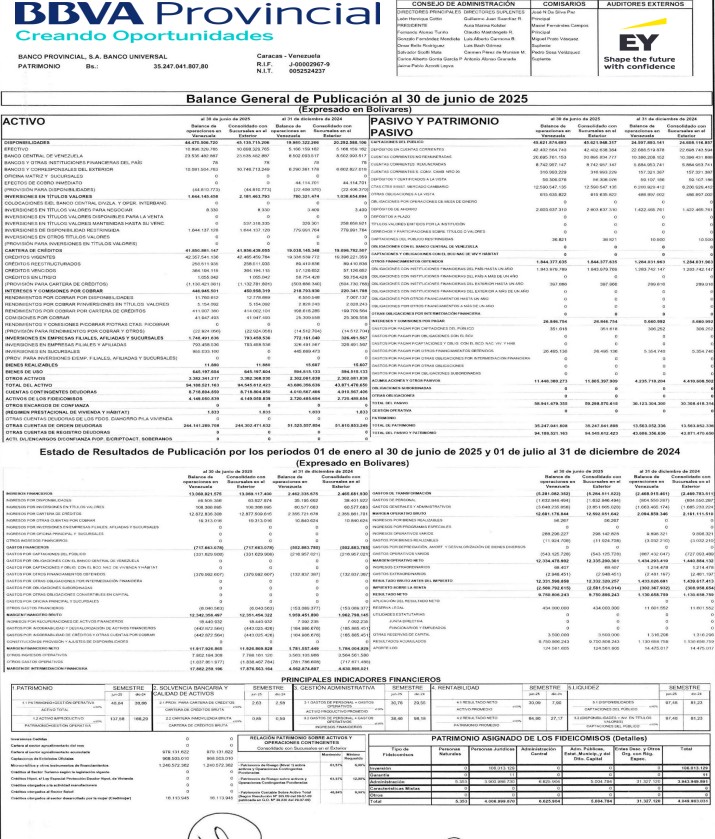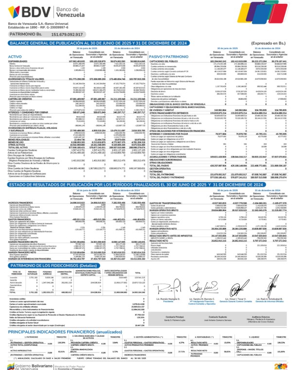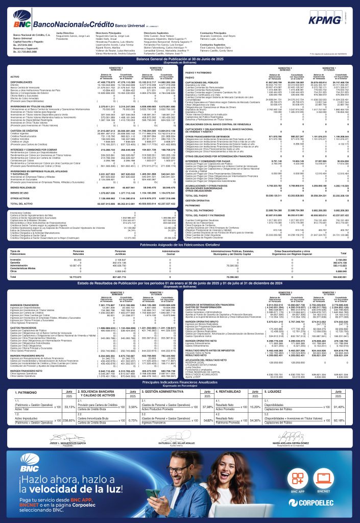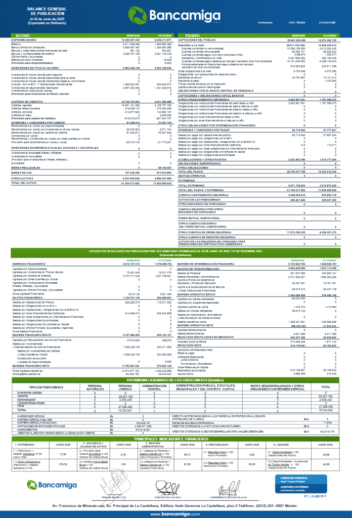 INFORMACIÓN FINANCIERA BALANCE DE PUBLICACIÓN MES DE JUNIO 2025., (BANCO NACIONAL DE CREDITO CA Banco Universal, BANCAMIGA Banco Universal. CA., BANCO DE VENEZUELA, SA. Banco Universal, BANCO DEL CARIBE Banco Universal (BANCARIBE)., Y BANCO PROVINCIAL, S.A., Banco Universal)
