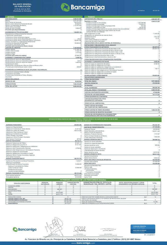 INFORMACIÓN FINANCIERA (BANCO DE VENEZUELA, SA. BCO UNIVERSAL, BANCAMIGA BCO UNIVERSAL., BANCO PROVINCIAL BANCO UNIVERSAL, BANCO DEL CARIBE BANCO UNIVERSAL (BANCARIBE) Y BANCO NACIONAL DE CREDITO CA BCO UNIVERSAL)