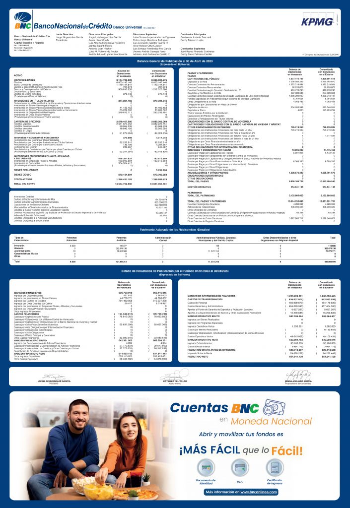 BALANCE DE PUBLICACIÓN CORRESPONDIENTE AL MES DE ABRIL DE 2023