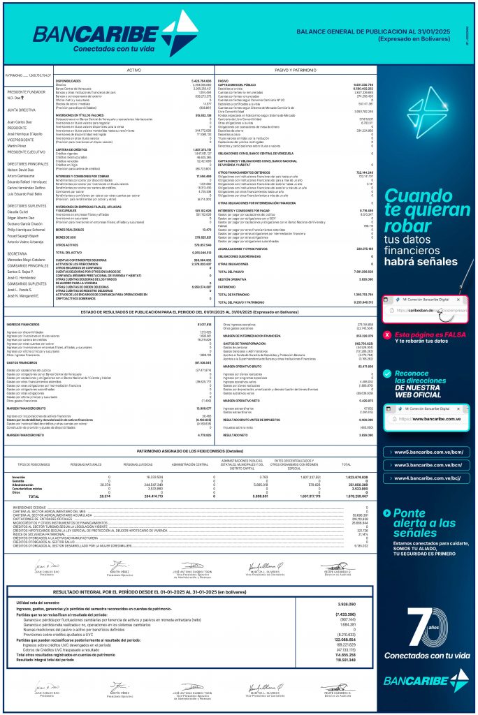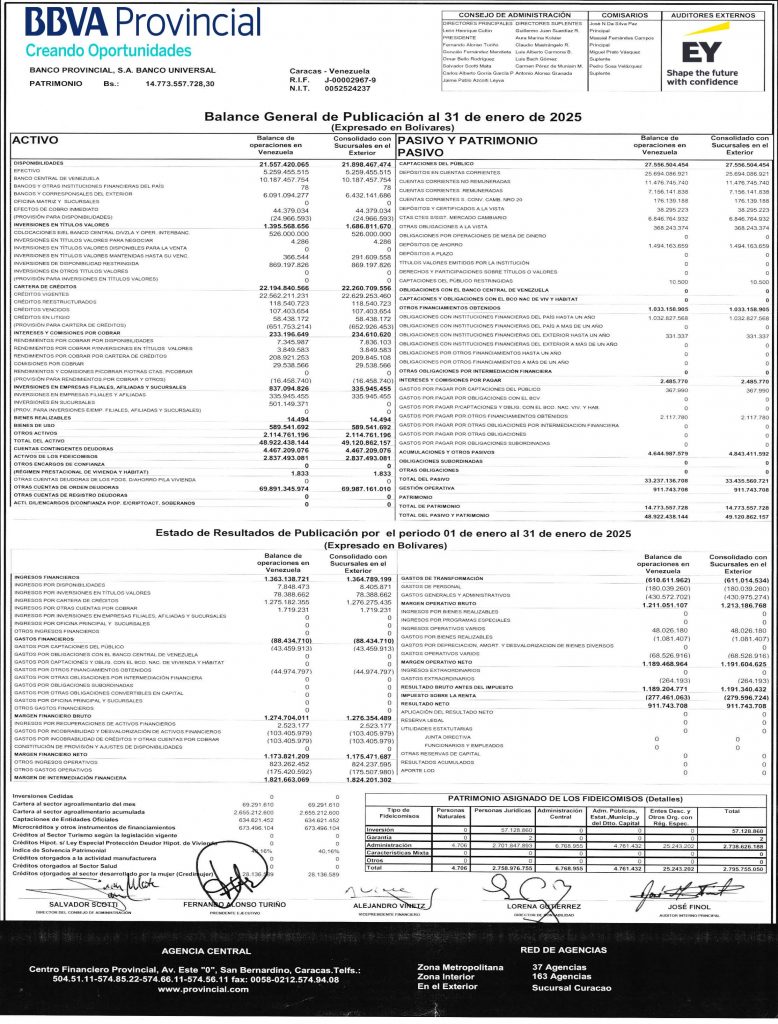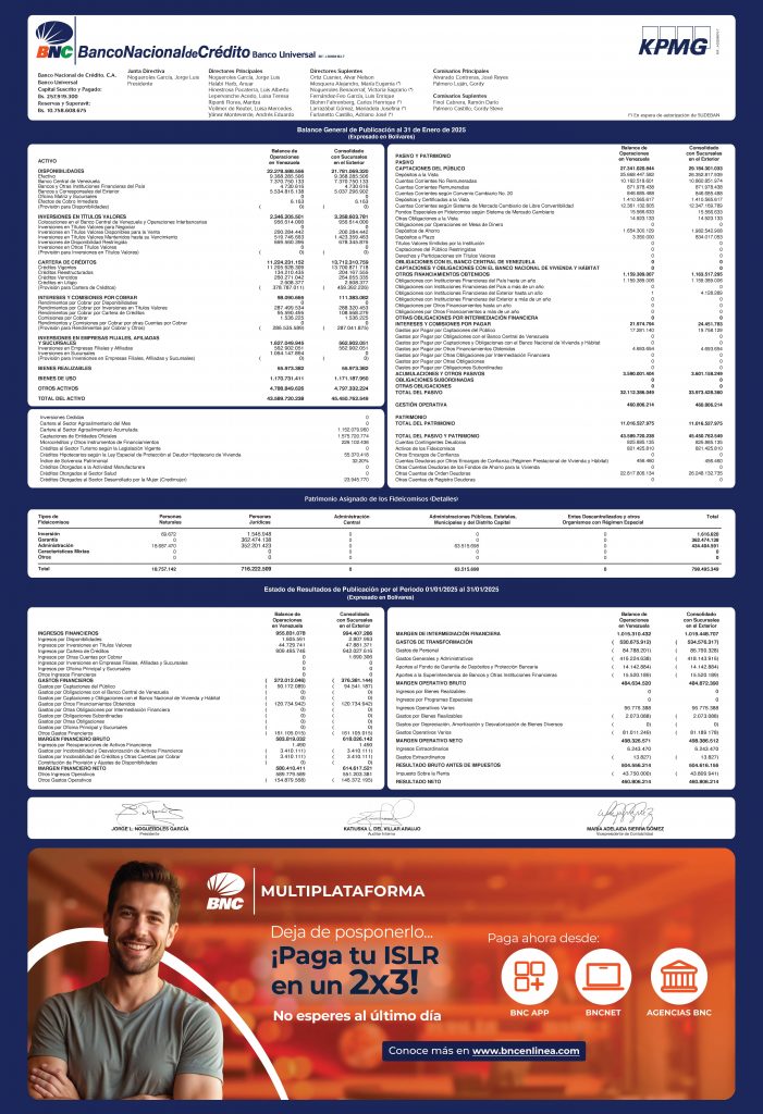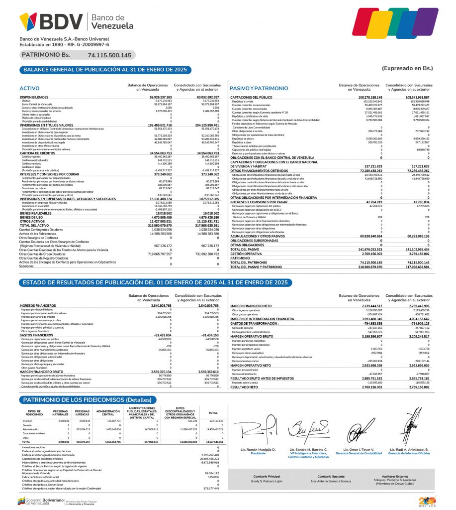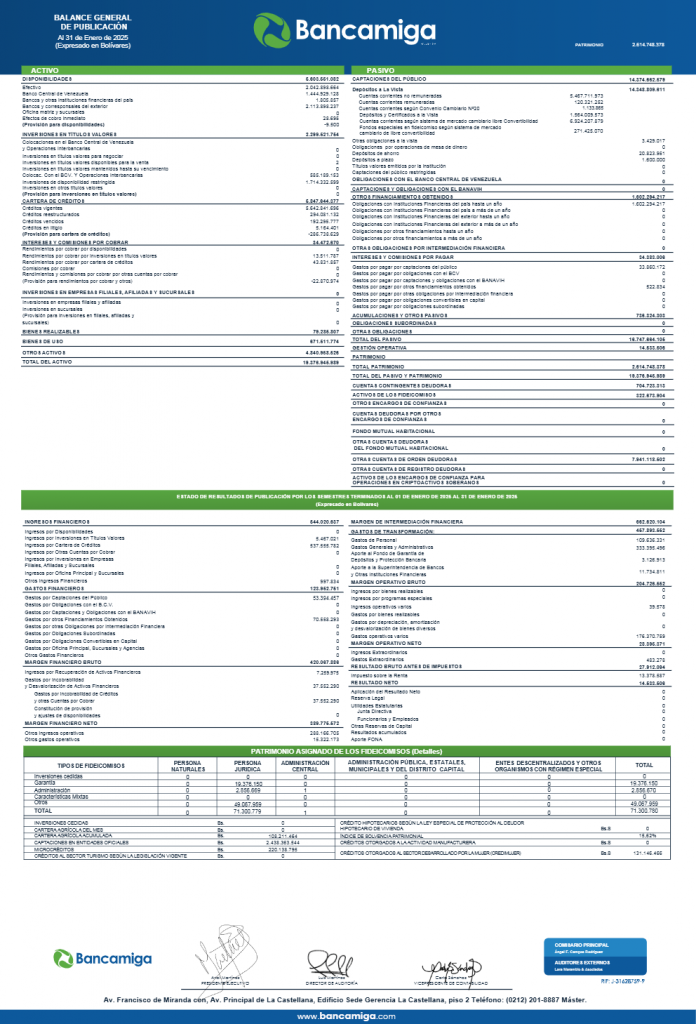 INFORMACIÓN FINANCIERA ENERO 2025., BANCO NACIONAL DE CREDITO CA Banco Universal, BANCAMIGA Banco Universal. CA., BANCO DE VENEZUELA, SA. Banco Universal, BANCO DEL CARIBE Banco Universal (BANCARIBE)., Y BANCO PROVINCIAL, S.A., Banco Universal,