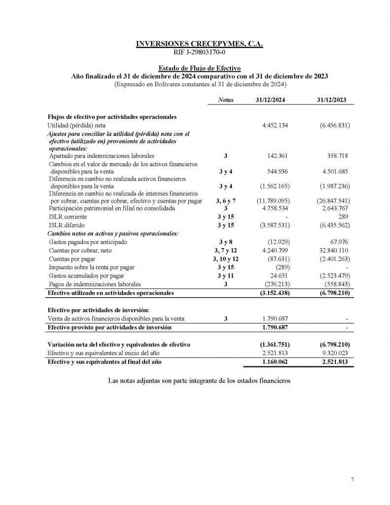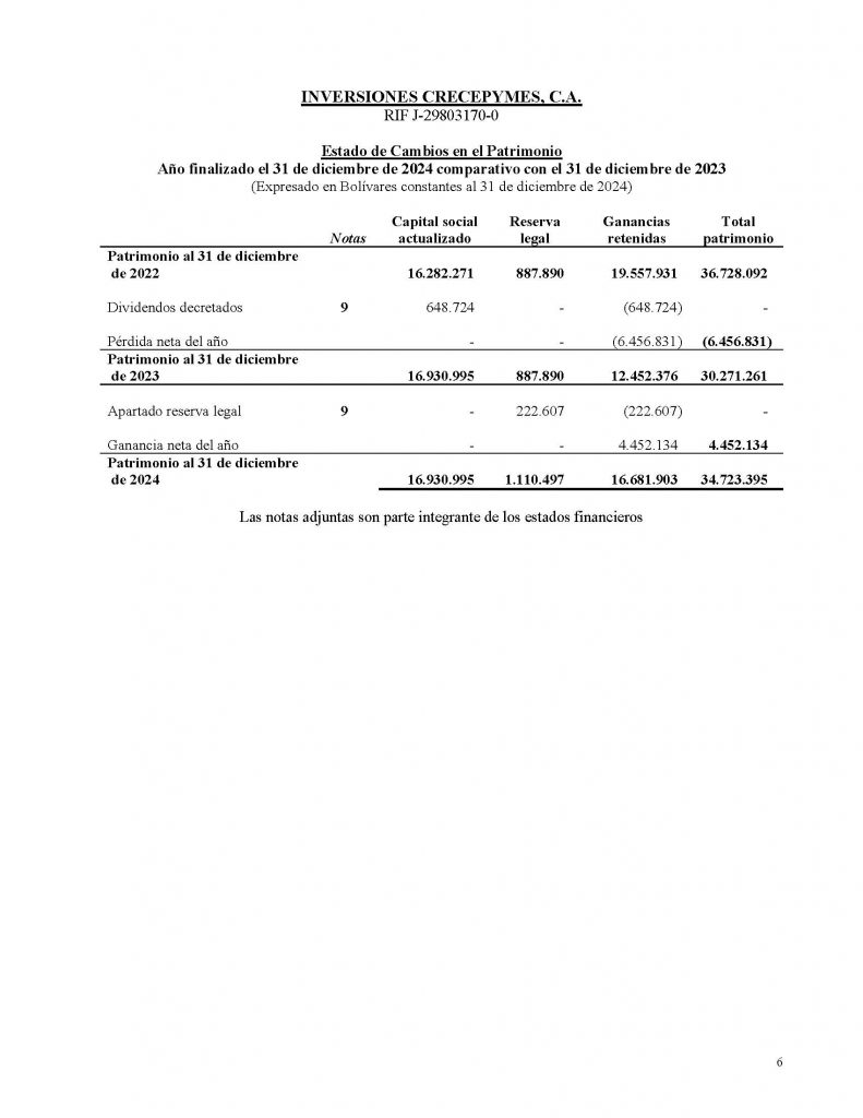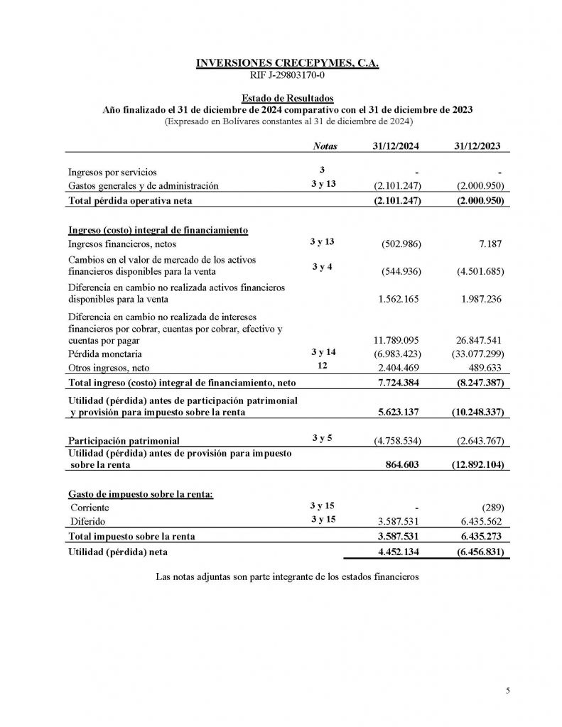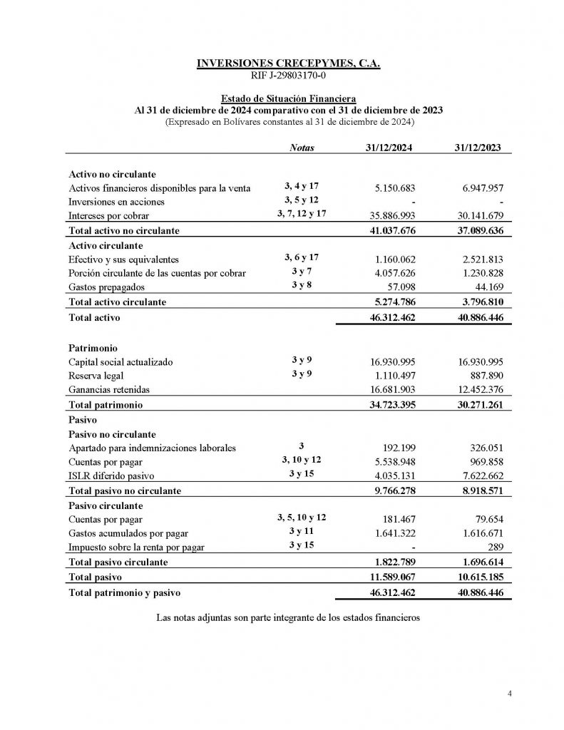 INVERSIONES CRECEPYMES, CA., INFORMACIÓN FINANCIERA AUDITADOS AL 31 DE DICIEMBRE DE 2024 VS 2023
