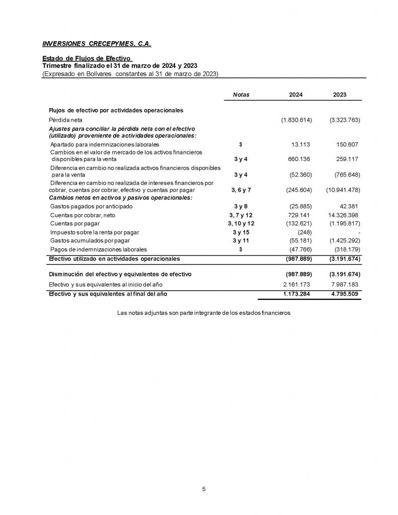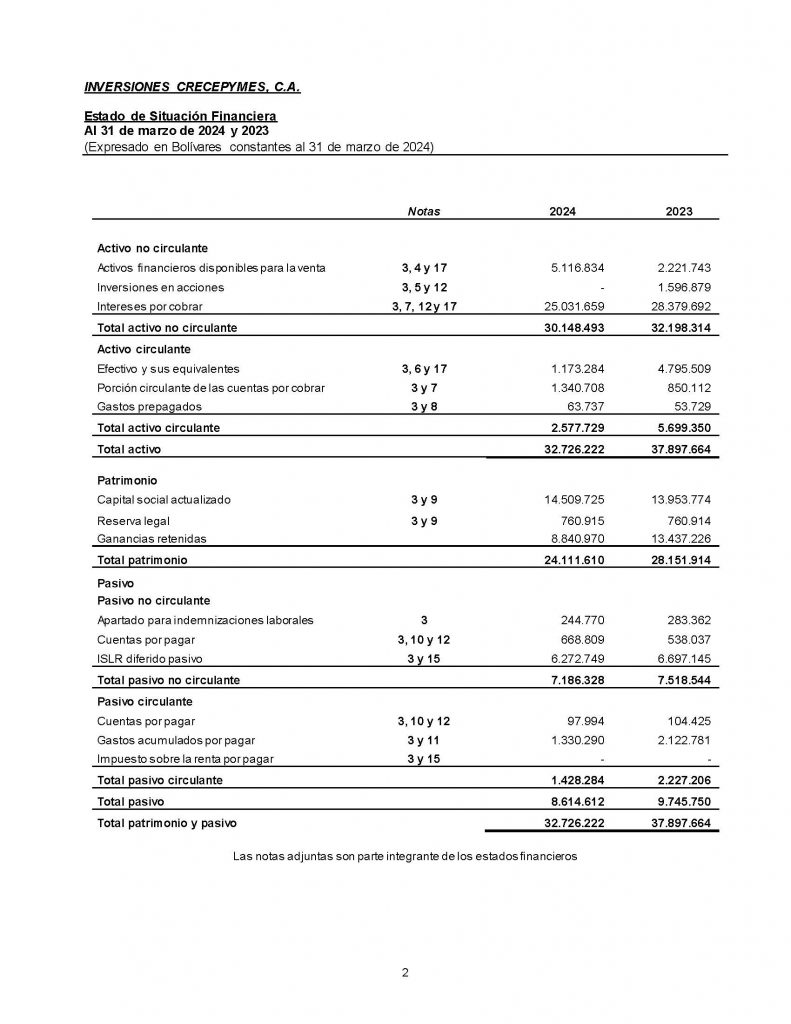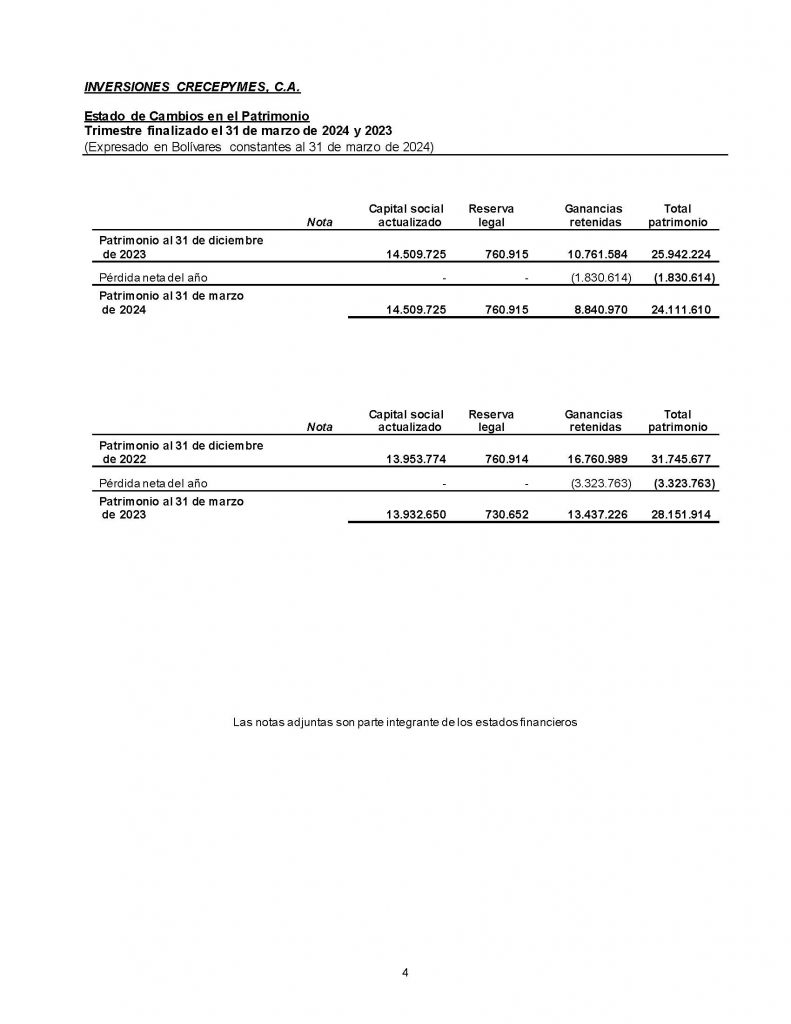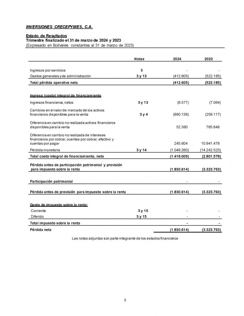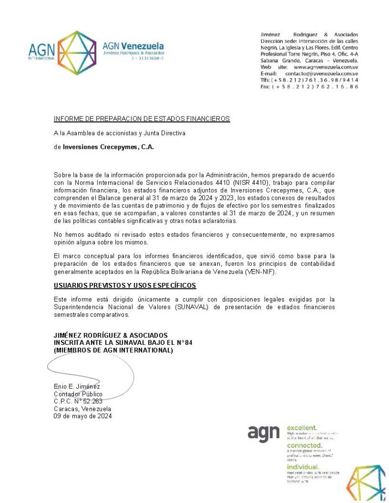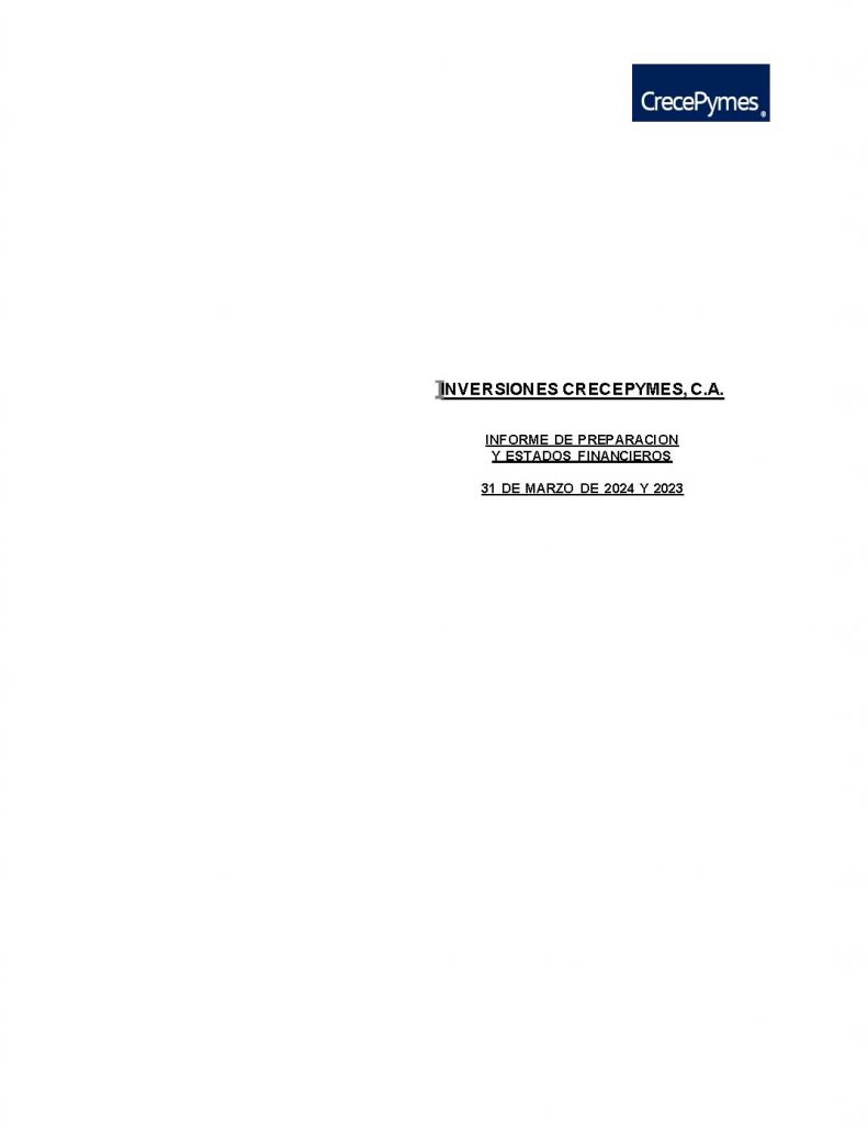 INVERSIONES CRECEPYMES, CA INFORMACIÓN FINANCIERA NO AUDITADO TRIMESTRAL MARZO 2024