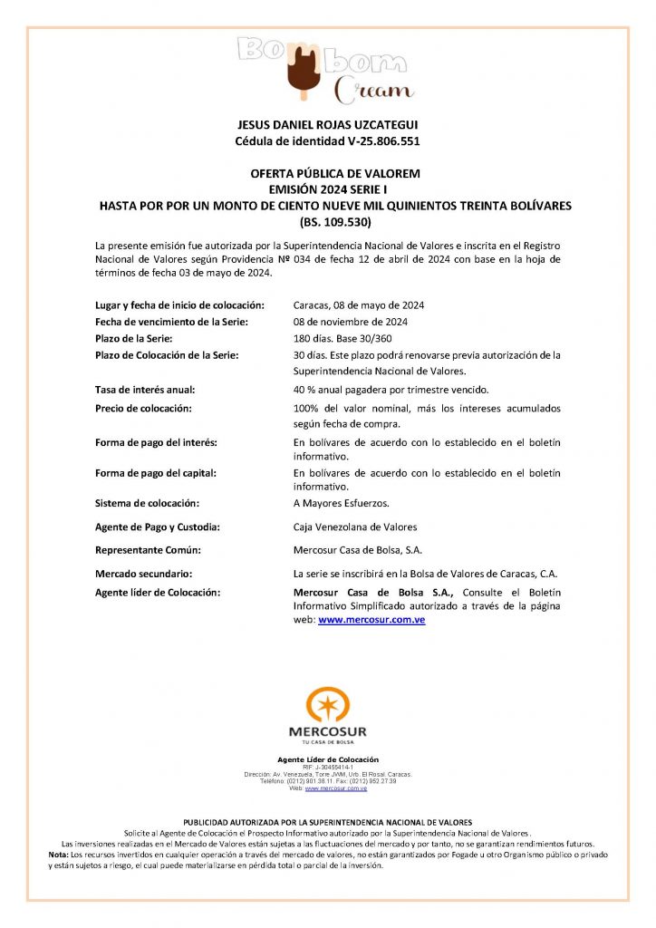 JESUS DANIEL ROJAS UZCATEGUI EMISIÓN 2024 VALORES DE EMPREDEDORES (VALOREM)