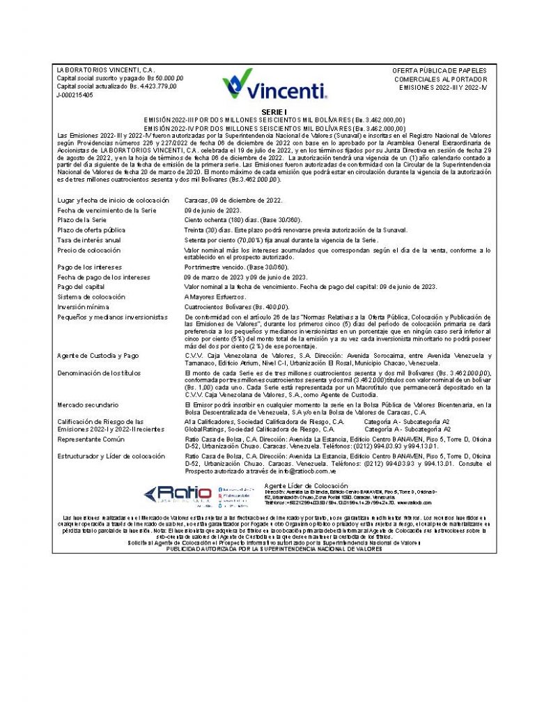 | Emisor | LABORATORIOS VINCENTI, C.A. |