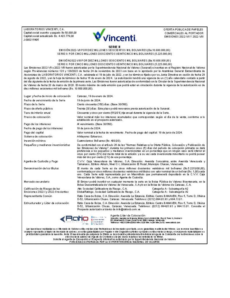 | Emisor | LABORATORIOS VINCENTI, C.A. |
