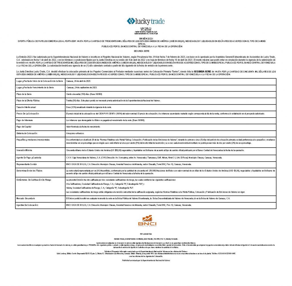 | Emisor | LUCKY TRADE, C. A. |