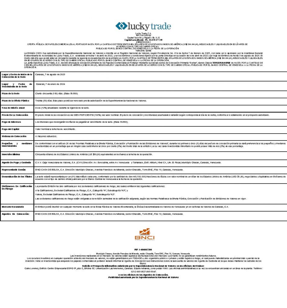 LUCKY TRADE, C. A. EMISIÓN 2022-I SERIE III PAPELES COMERCIALES AL PORTADOR