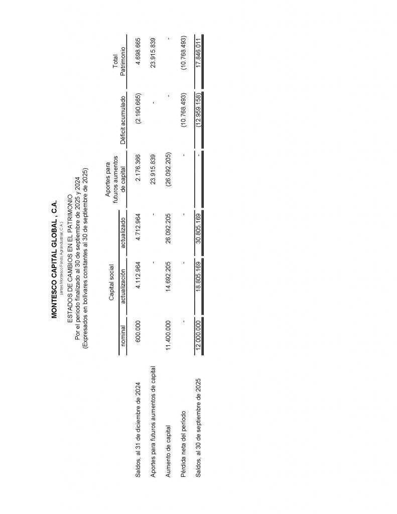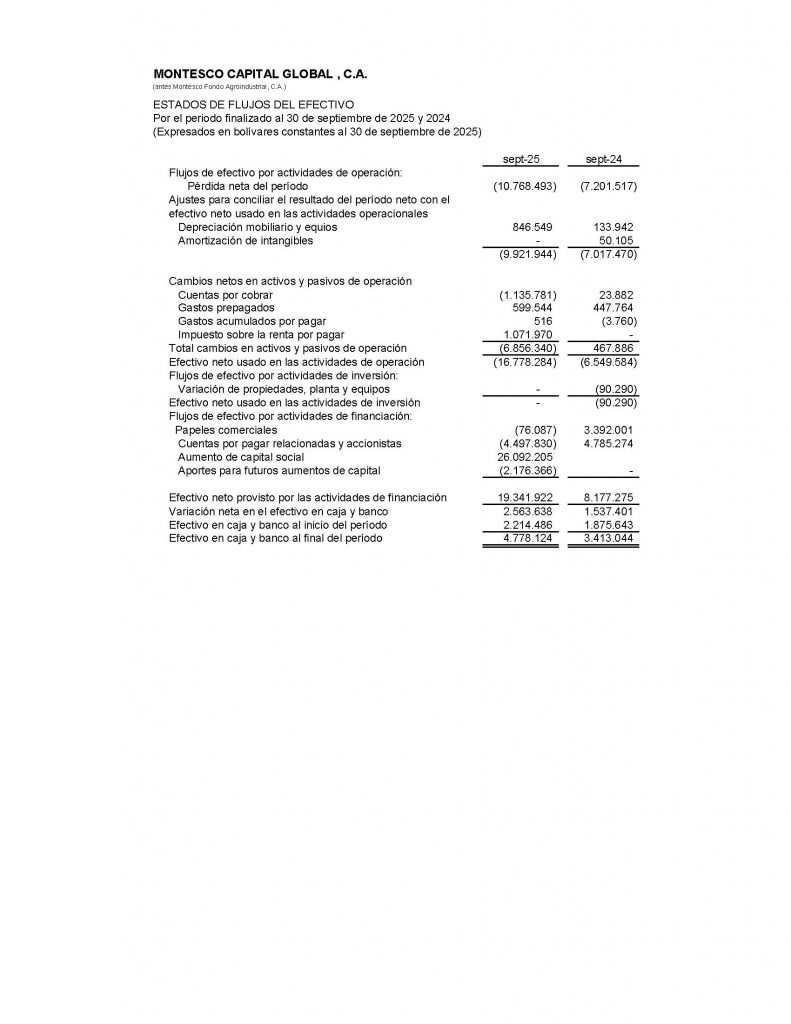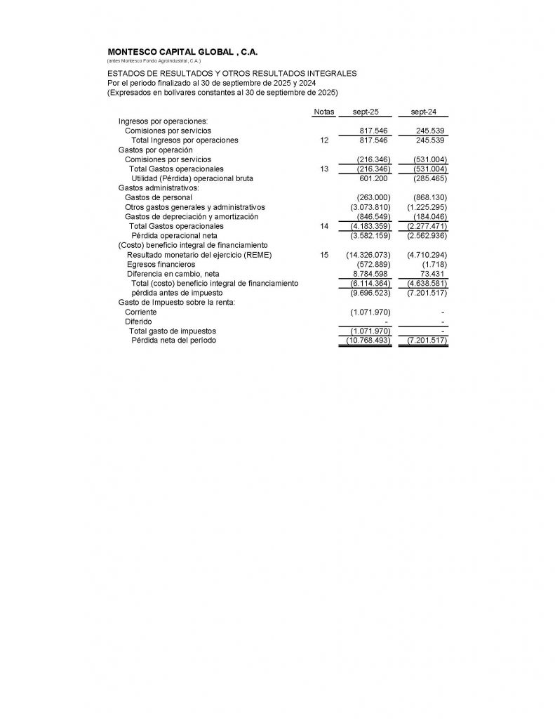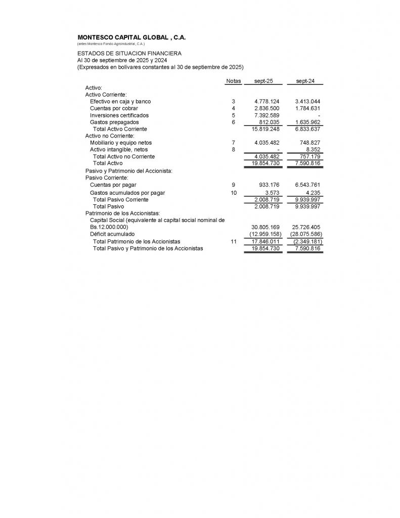 MONTESCO CAPITAL GLOBAL C.A., INFORMACIÓN FINANCIERA TRIMESTRAL SEPTIEMBRE 2025 (No Auditado)