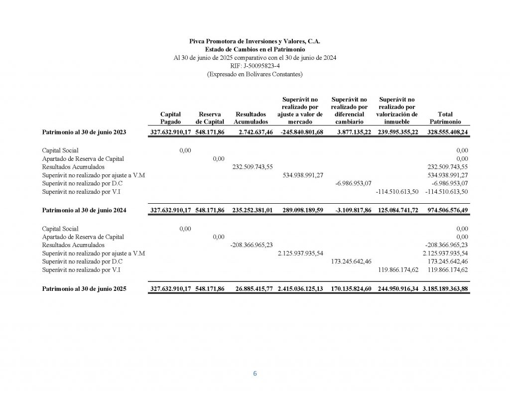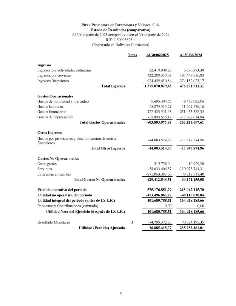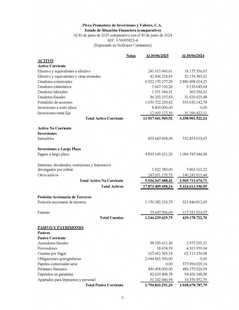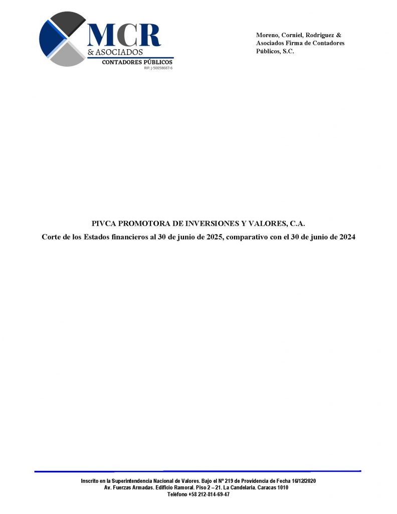 PIVCA PROMOTORA DE INVERSIONES Y VALORES, C. A., INFORMACIÓN FINANCIERA “ESTADOS FINANCIEROS NO AUDITADOS 2do TRIMESTRE 2025-2024”