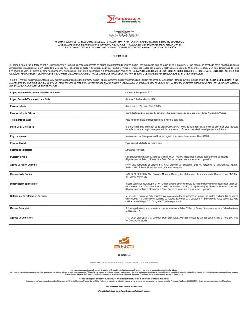 | Emisor | PROCESADORA MARSOCA, C. A. |