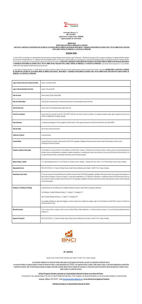 | Emisor | PROCESADORA MARSOCA, C. A. |