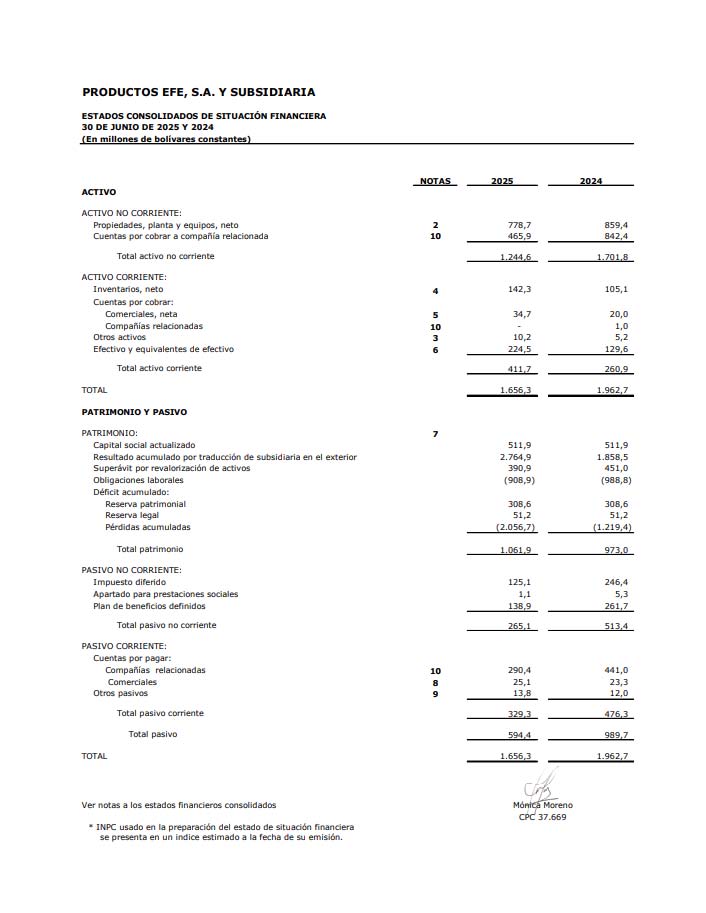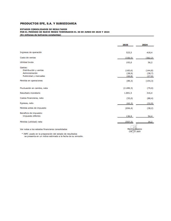 PRODUCTOS EFE S.A., INFORMACIÓN FINANCIERA TERCER TRIMESTRE JUNIO 2025 Y 2024 (No Auditado)