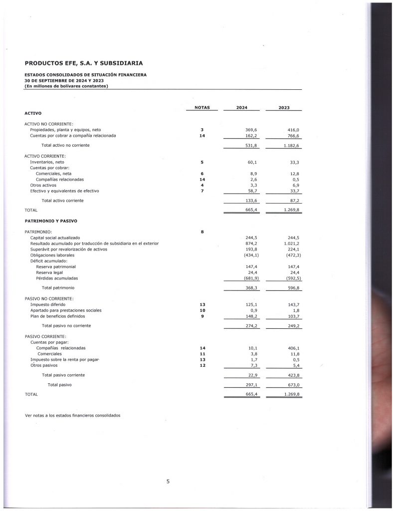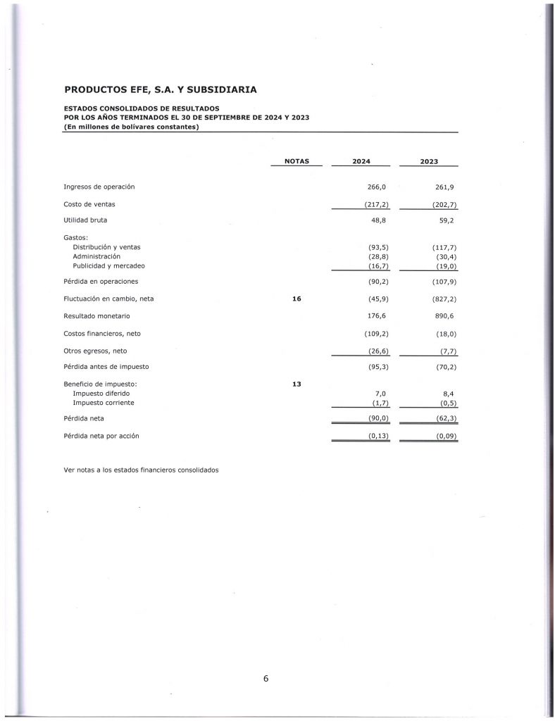 PRODUCTOS EFE, S.A., Y SUBSIDIARIA ESTADOS FINANCIEROS AUDITADOS SEPTIEMBRE 2024-2023