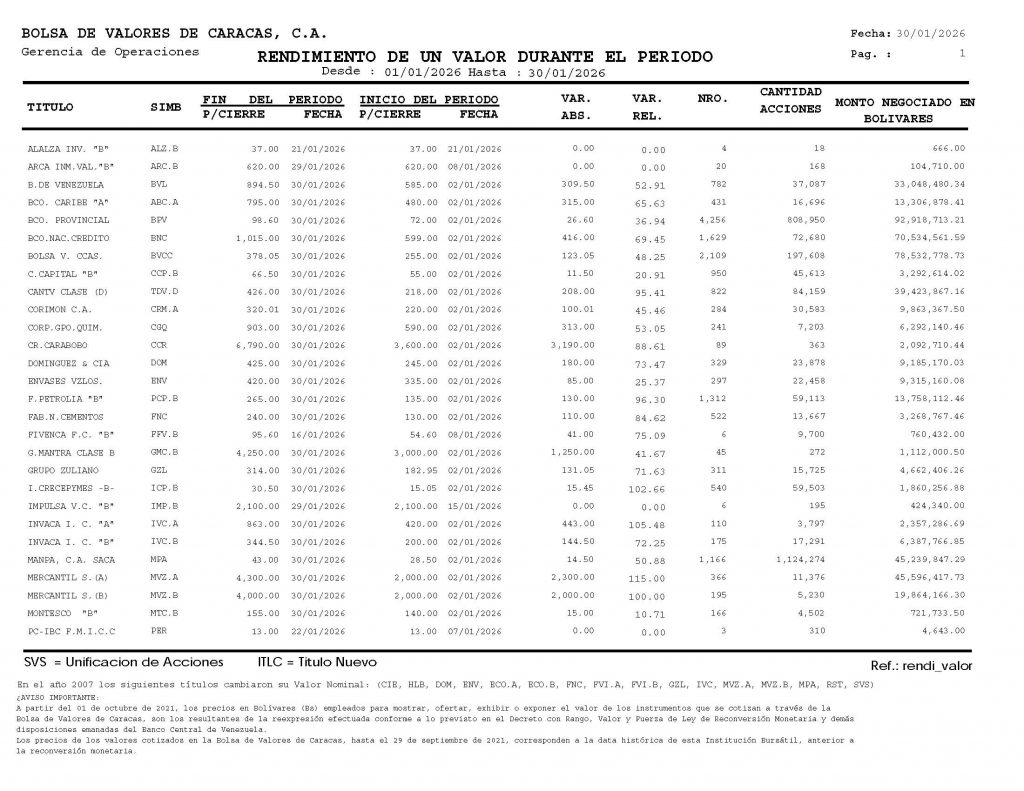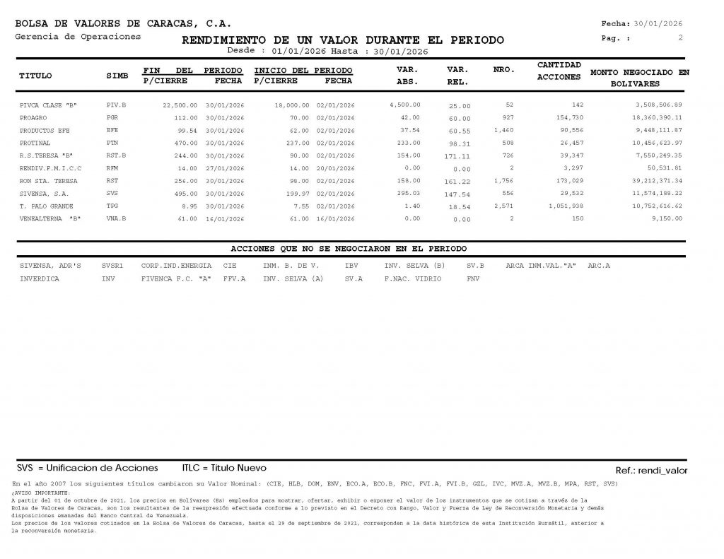 REPORTE DE RENDIMIENTO DE LAS ACCIONES MES DE ENERO 2026