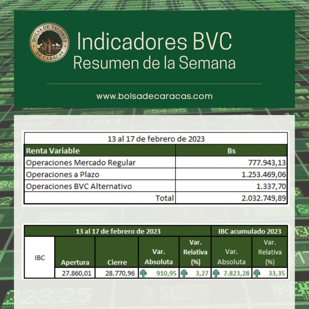 En la Bolsa de Valores de Caracas, entre el 22 y el 24 de febrero de 2023, se negoció un total de 2 millones 032 mil 749 bolívares.