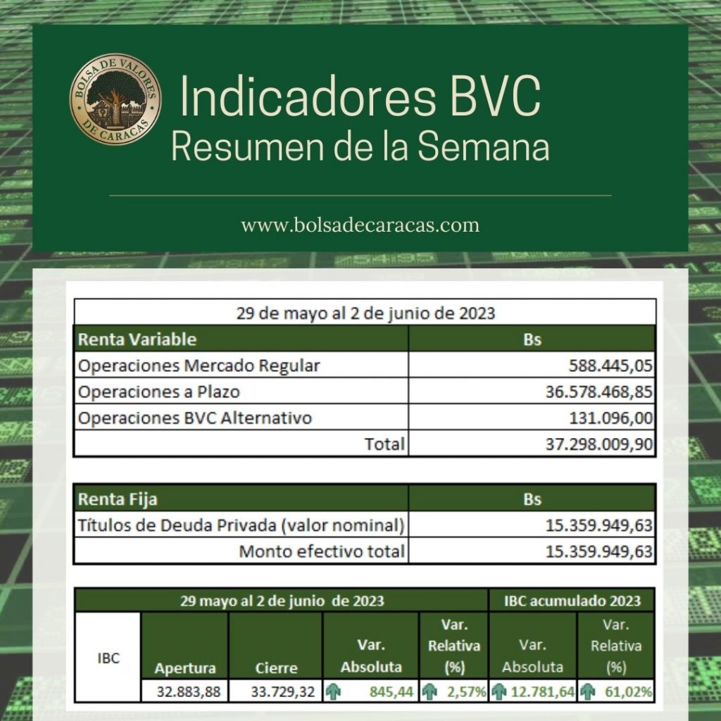 En la Bolsa de Valores de Caracas, entre el 29 de mayo y el 2 de junio de 2023, se negoció un total de 52 millones 657 mil 959 bolívares.