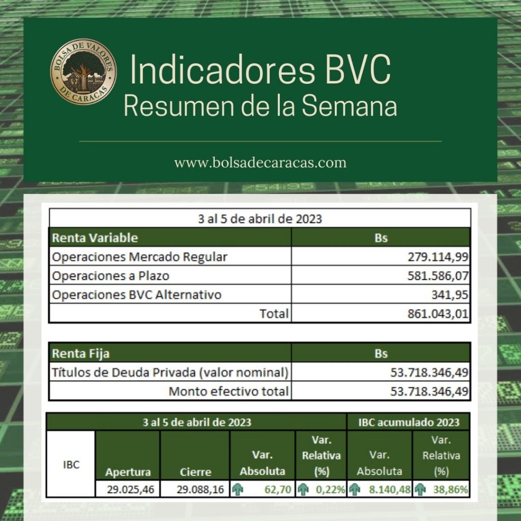 En la Bolsa de Valores de Caracas, entre el 3 y el 5 de abril de 2023, se negoció un total de 54 millones 579 mil 389 bolívares.