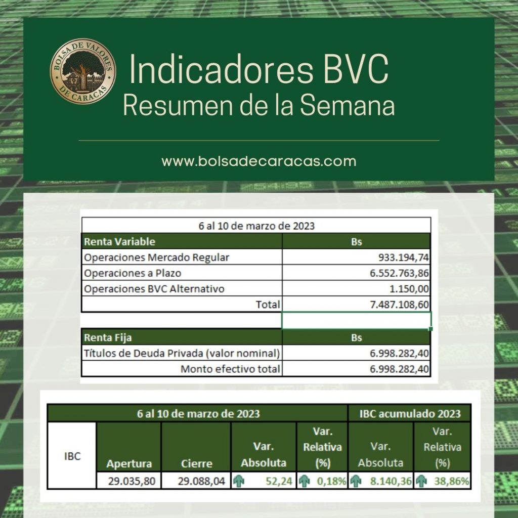 En la Bolsa de Valores de Caracas, entre el 6 y el 10 de marzo de 2023, se negoció un total de 14 millones 485 mil 391 bolívares.