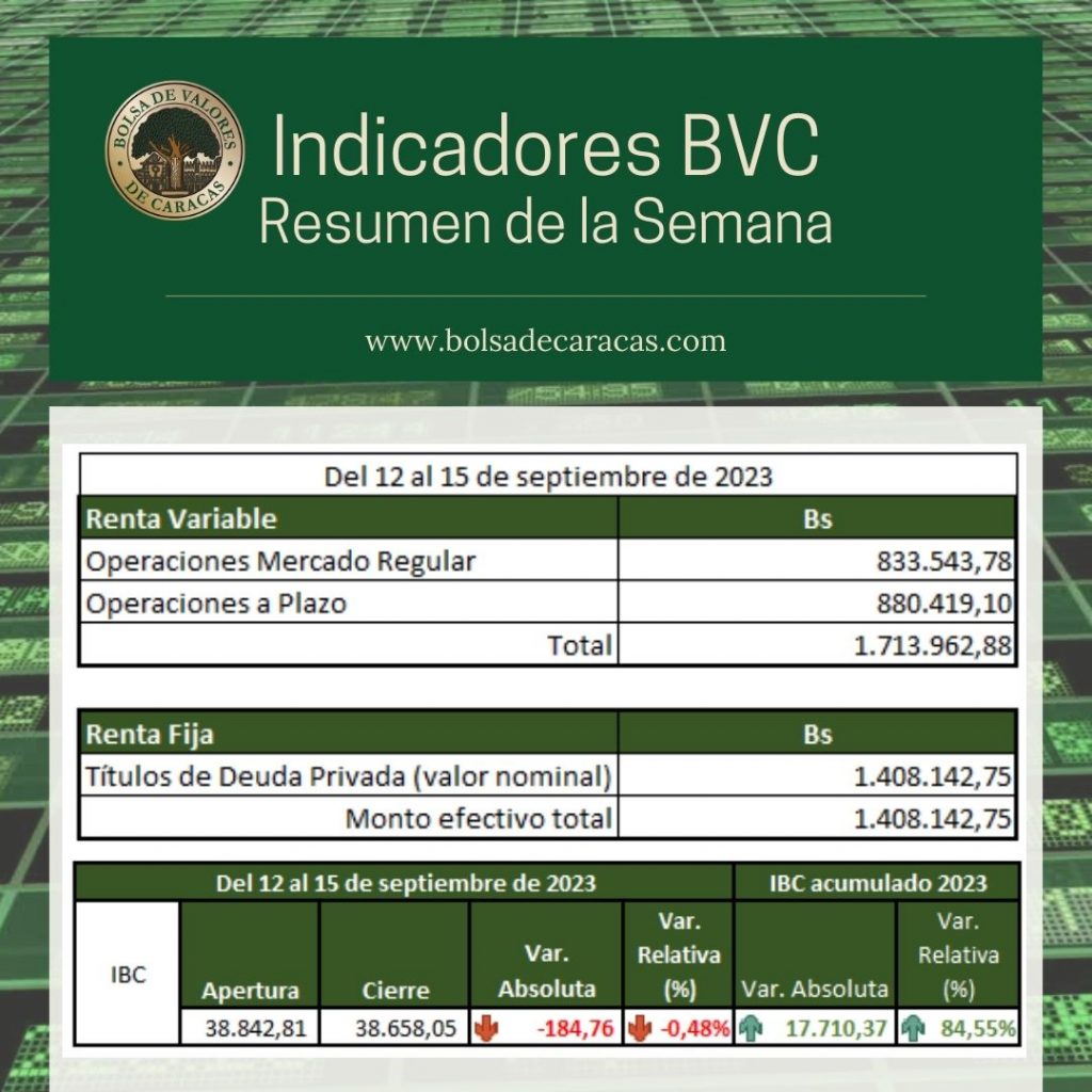 En la Bolsa de Valores de Caracas, entre el 12 y el 15 de septiembre de 2023, se negoció un total de 4 millones 499 mil 641 bolívares.
