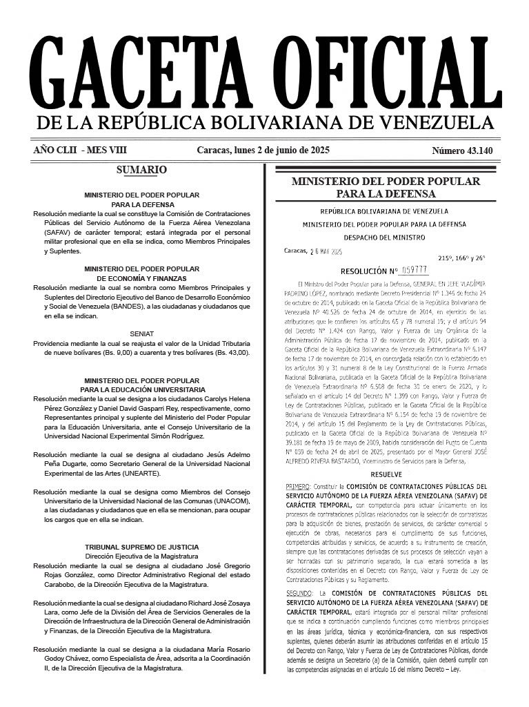 En la Gaceta Oficial Nro. 43.140, de fecha 2 de junio de 2025 de mayo de 2.023, fue publicada la Providencia del Servicio Integrado de Administración Aduanera y Tributaria (Seniat) mediante la cual se reajusta el valor de la Unidad Tributaria (UT) de Bs 9,00 a Bs 43,00.
