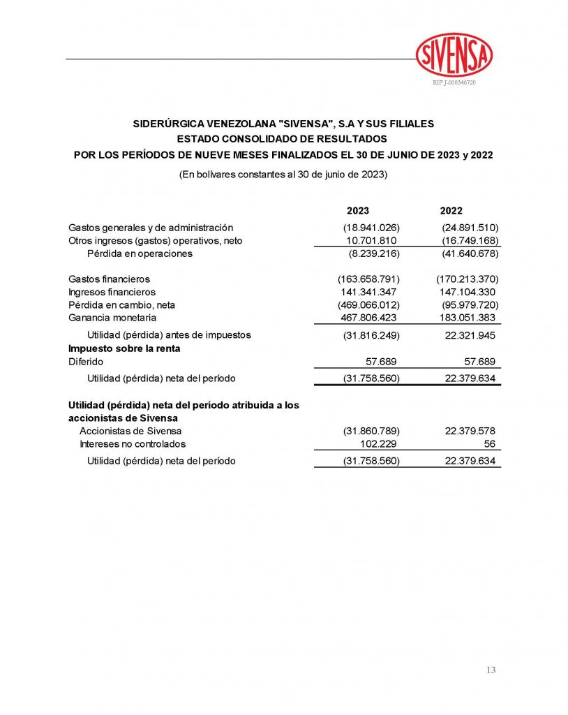 ESTADOS FINANCIERAOS DE LA EMPRESA Sivensa Informe Trimestral Tercer Trimestre 2023 by Jose Coluccio on Scribd